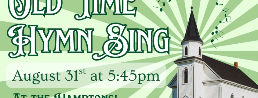 We’re joining those who can’t normally join us for the next fifth Sunday Hymn Sing! Bring along your singing voice for hymn requests, quartet callouts, and old-time worship. Meet in the dining room of the assisted living section at The Hamptons (the south gate) at 5:45pm, or meet at The Woods for a carpool at 5:30pm.